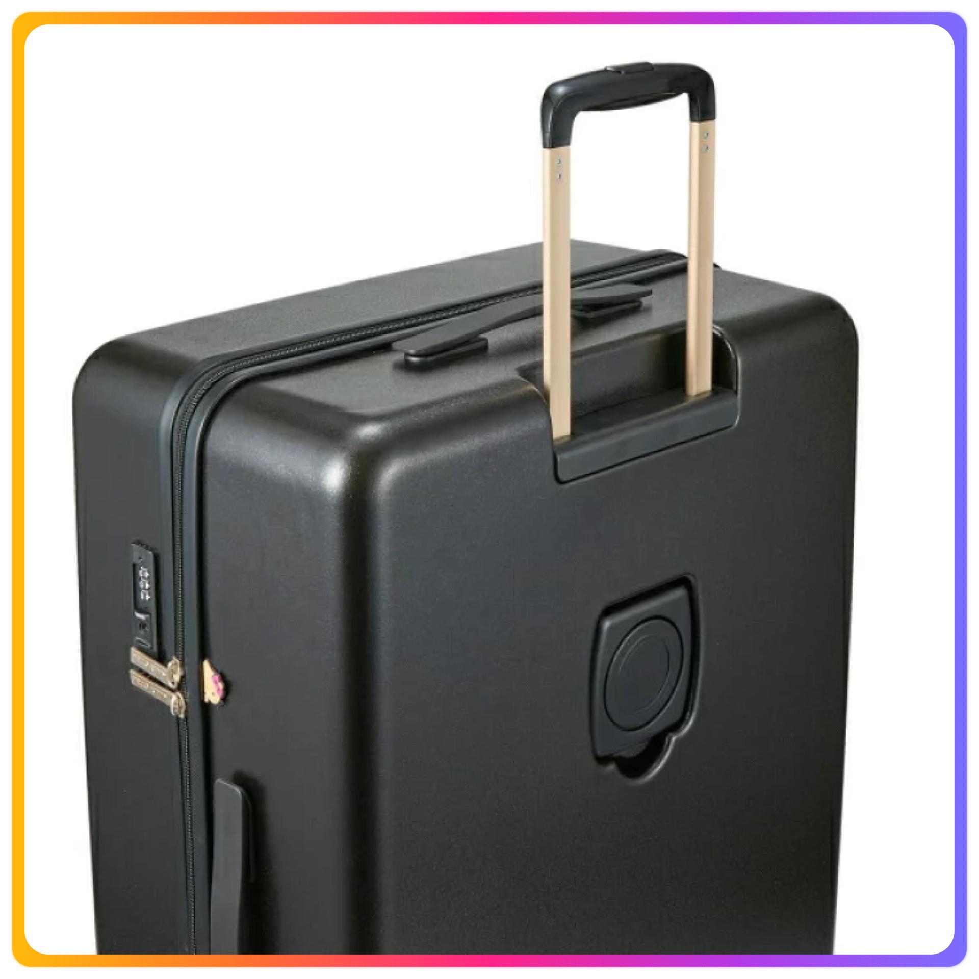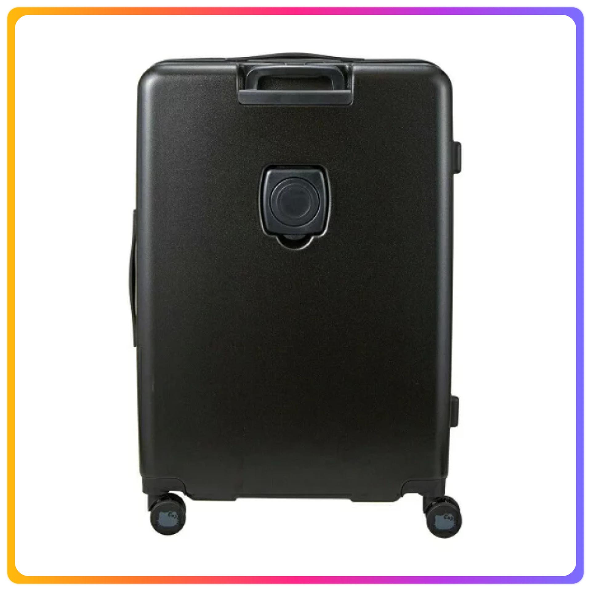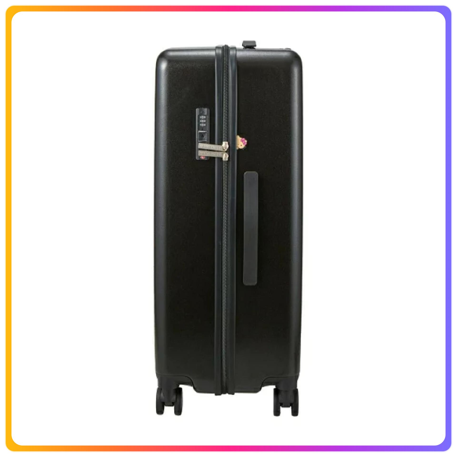 - 在行李箱的黑色機身上映襯的粉色標誌也是成人可愛的設計,畫了Hello Kitty的臉的剪影