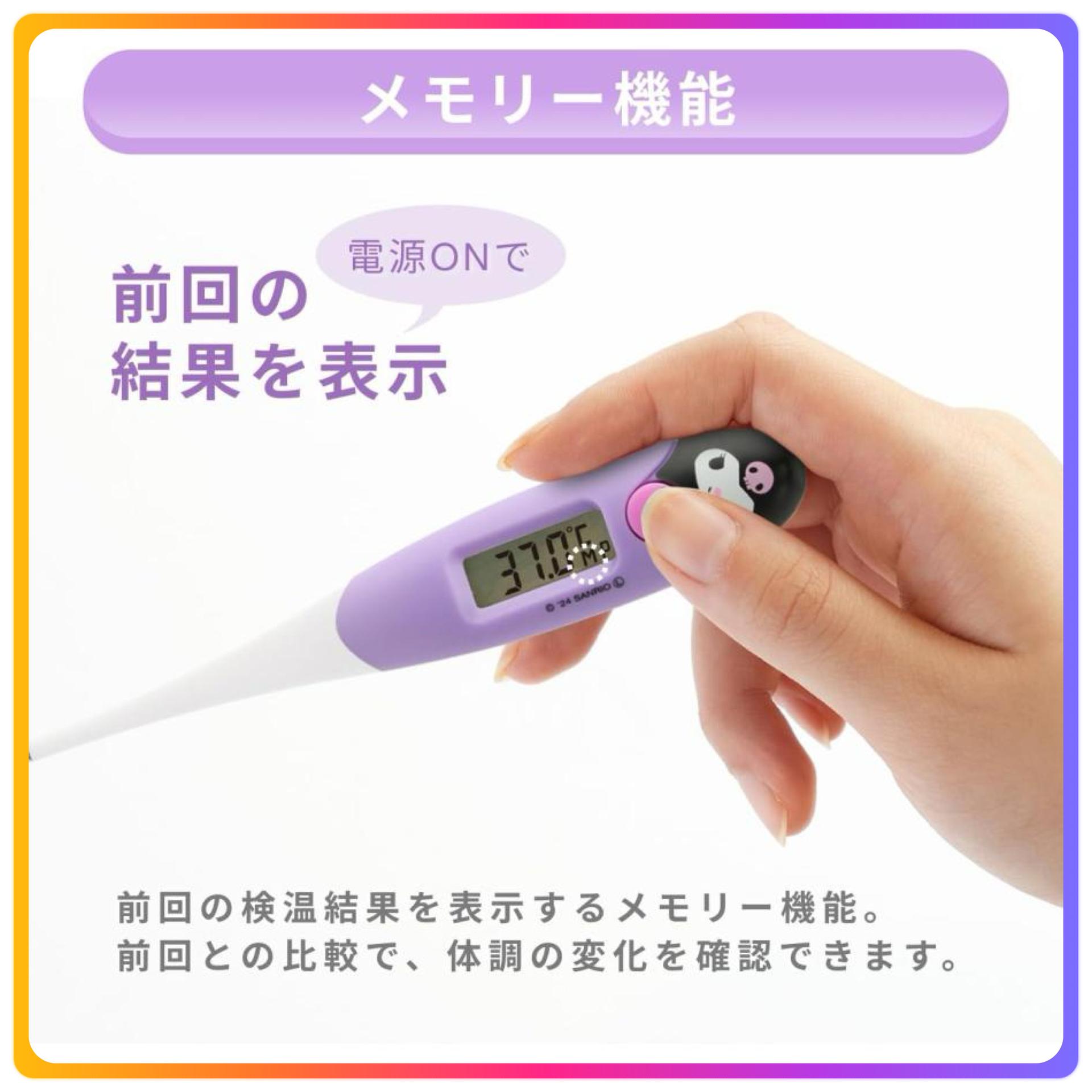 - 下方約15秒預測體溫測量 - 因為尖端是卷的,所以輕輕地貼合在脇上 - 測溫結果在37.8℃以上時,請更改蜂鳴器的節奏通知 - 忘記關閉電源時安心的自動關機功能 - 因為是抗菌樹脂,所以可以乾淨地使用