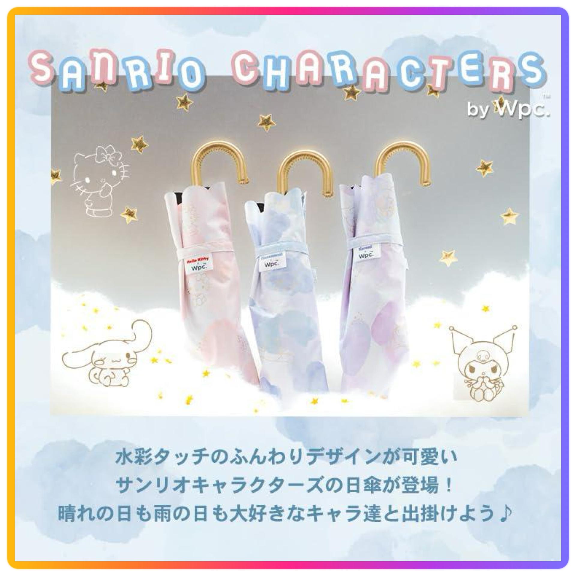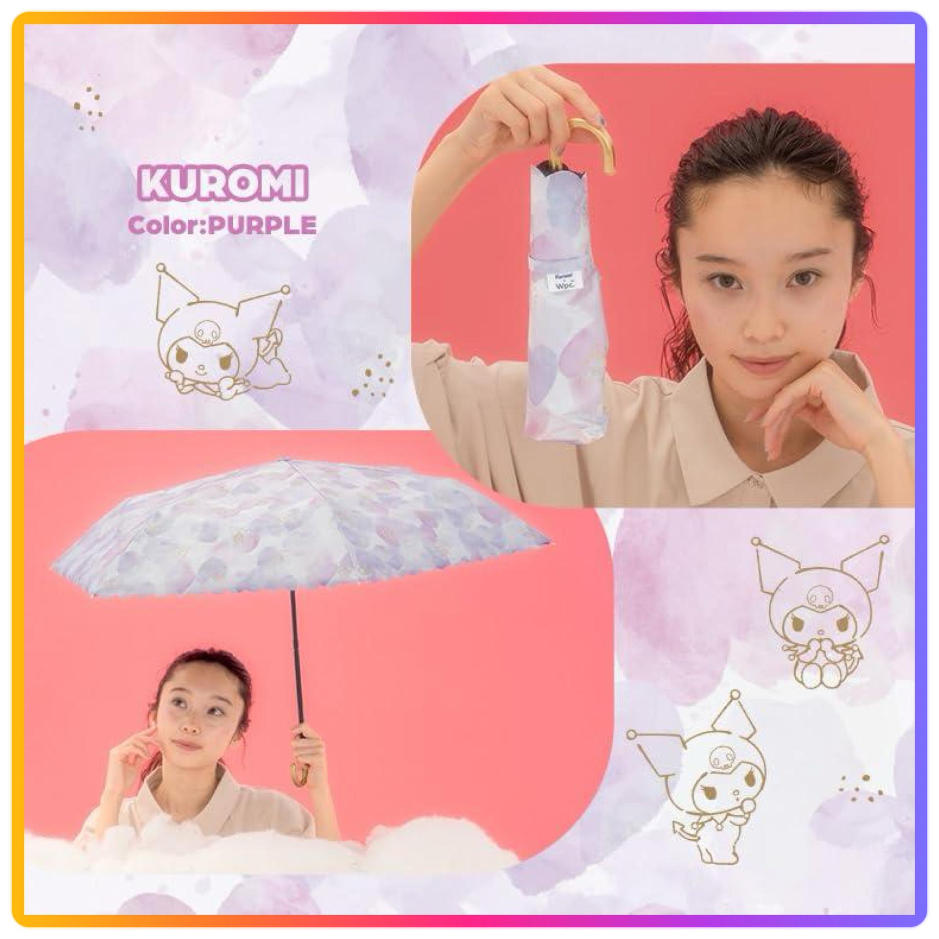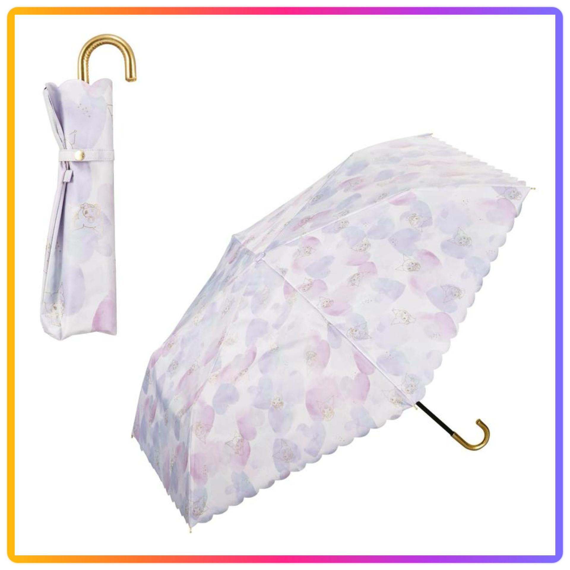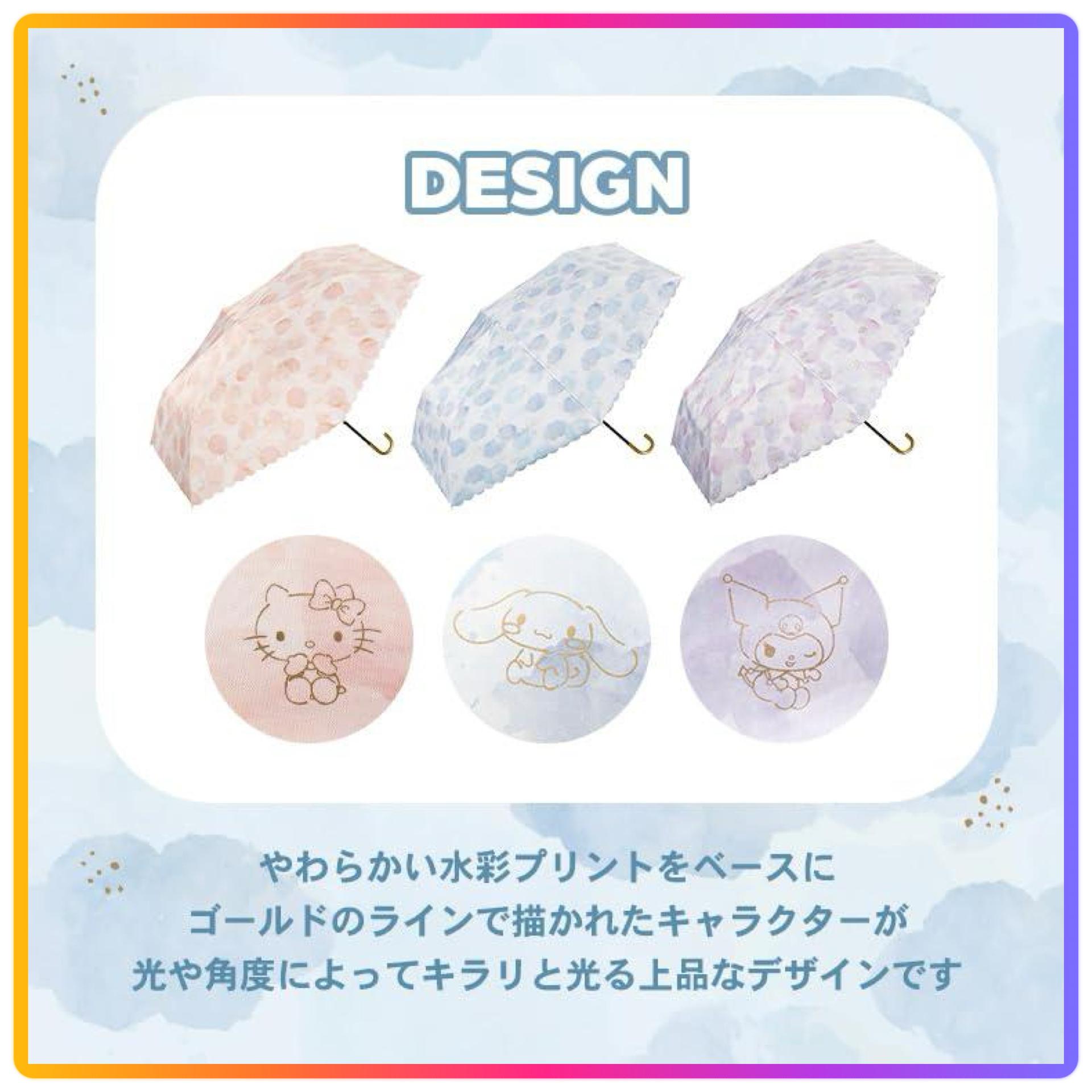 尺寸:親骨:49cm - 淡粉色和扇形的邊緣是重點 - 成人可愛的三麗鷗卡通人物的摺疊太陽傘 - Hello Kitty、Cinnamoroll 、Kuromi 做成可愛的水彩圖案的摺疊太陽傘 - 用金色線條描繪的三麗鷗角色,根據光線和角度閃閃發光的時尚設計 - 扇貝的邊緣很可愛,金色的把手給人一種優雅的印象 - Cinnamoroll 是以雲,Hello Kitty 是蘋果,Kuromi 是以心形為主題設計