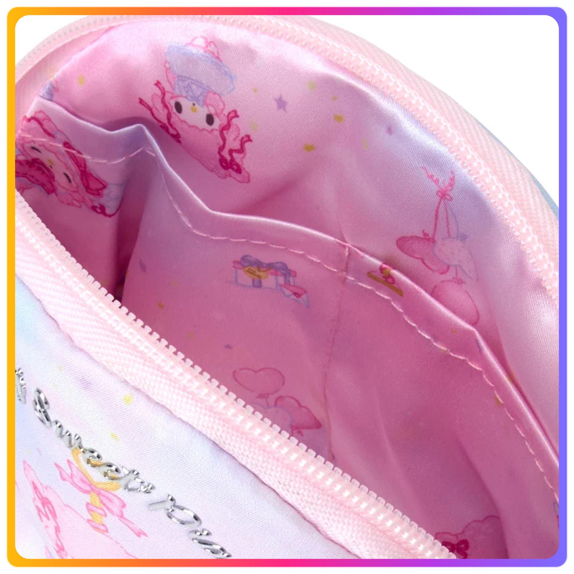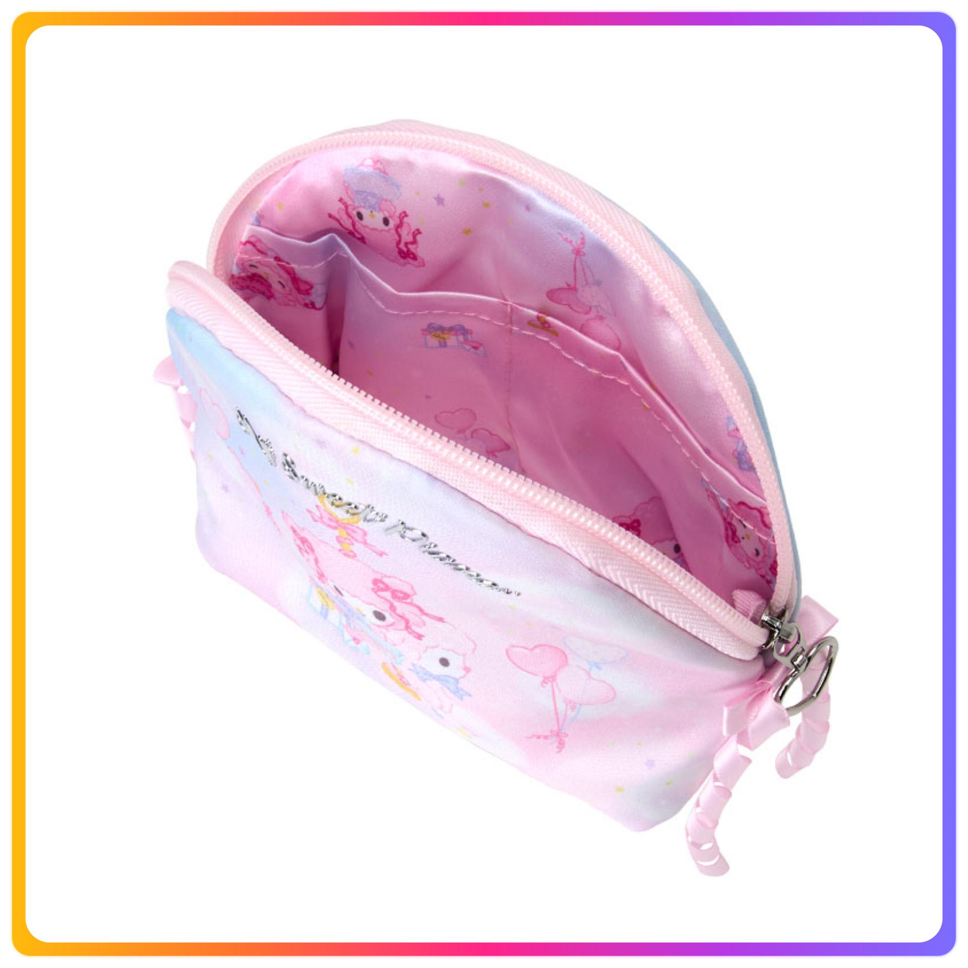 - 圓圓的緞帶是重點 - 內側有便於分類收納的口袋 尺寸: - 約寬17×深6×高14cm - 不含絲帶 - 拉鍊式開合 - 內側:開口口袋2 - 物件年齡3歲以上
