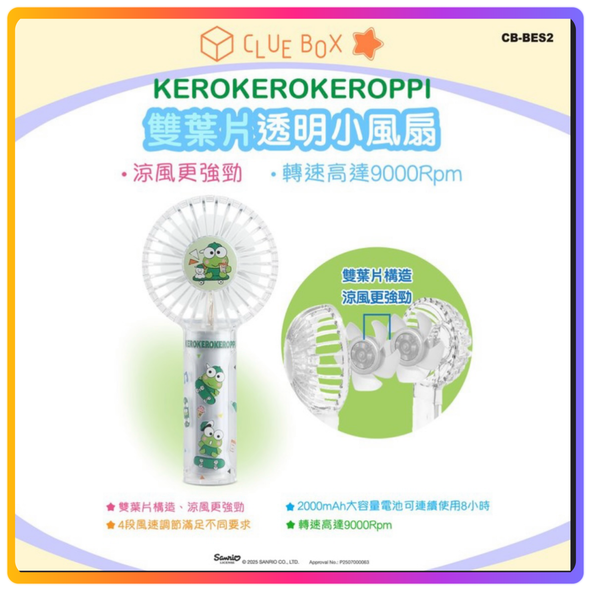 - 雙葉片構造,涼風更強勁 - 4段風速調節滿足不同要求 - 2000mAh大容量電池可連續使用8小時