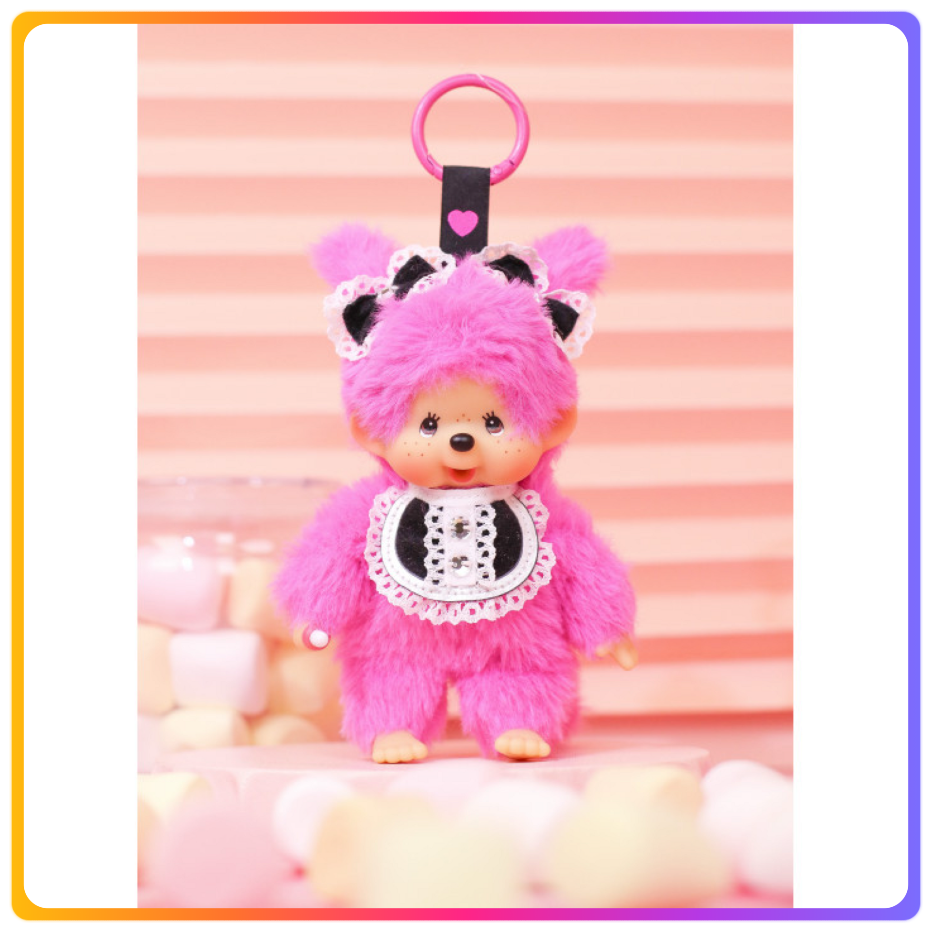 Monchhichi Hot Pink w/Bib 掛飾公仔