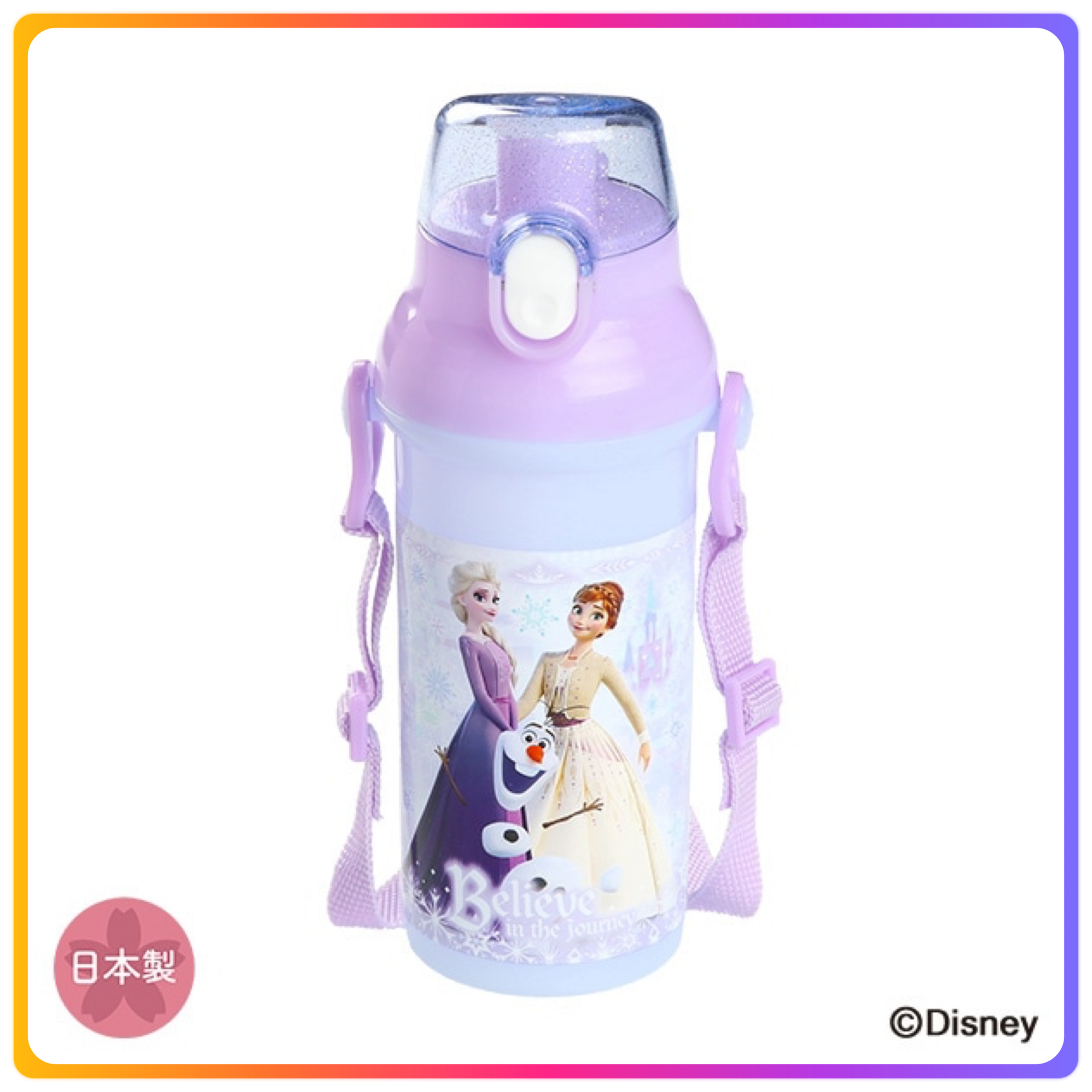 日本製|Frozen x Skater 一鍵式直飲透明水樽連掛帶|480ml